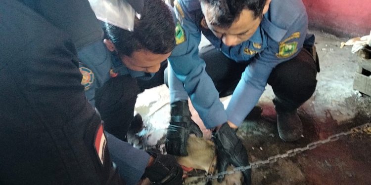 Di Lakukan tindakan Pelepasan satu ekor kera oleh Anggota Regu 1 UPT Pemadam Kebakaran Satpol PP Kab.Kuningan, sebanyak 7 orang anggota dan 1 Randis Damkar dalam waktu -+ 30 menit.