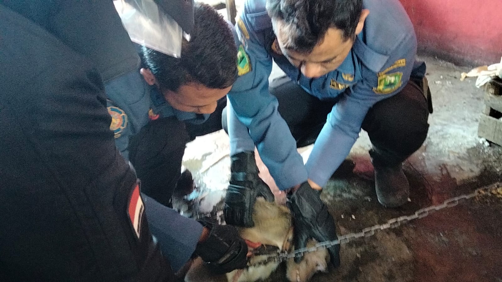 Di Lakukan tindakan Pelepasan satu ekor kera oleh Anggota Regu 1 UPT Pemadam Kebakaran Satpol PP Kab.Kuningan, sebanyak 7 orang anggota dan 1 Randis Damkar dalam waktu -+ 30 menit.